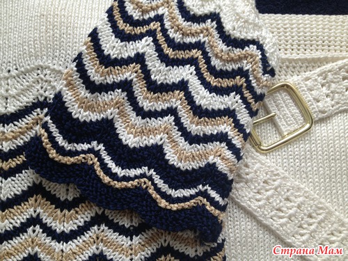 Нижнюю часть на высоту складок вязала по прямой.