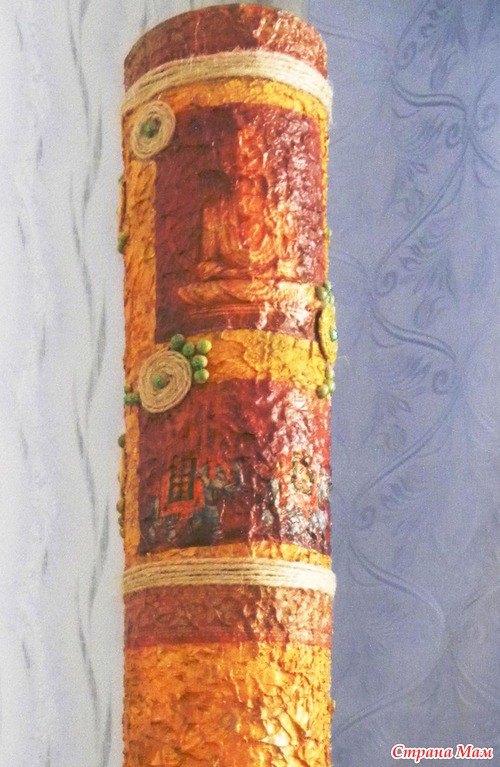 3. А эта самая простая в изготовлении и к декупажу не относится, но решила ее тоже разместить здесь. Эта просто обклеена фактурными обоями!