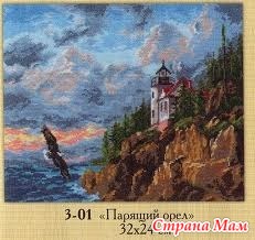 Когда очень давно, два с лишним года назад, когда еще начинала новую работу, только завершив предыдущую, упал мой взгляд на набор от "Алисы" - "Парящий орел". Он буквально завораживал взгляд: бурлящее море, скалистый берег, хмурое небо и вольная птица, свободна расправившая крылья над водой, безразличная к стихиям.