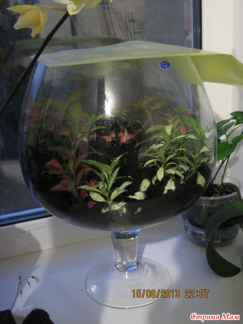 А это мой эксперимент. Увидела на просторах инета необычное применение аквариума и тоже захотелось.