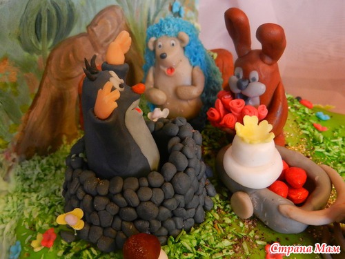 Приветик!... мои выходные тортики... Маша и медведь... лепка фигурок модела... ну и с кротом вес 4 кг... избушку заказчица попросила.. Мышку не фоткала... она какая-то не очень... не выходит она у меня... лепила ее 3 раза Читать полностью