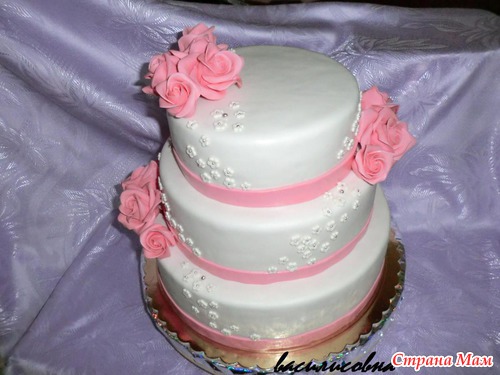 Второй свадебшный)))дизайн выбирала невеста самостоятельно... нашла тортик в нете, автор идеи Аня Романенко... чудные у нее торты
