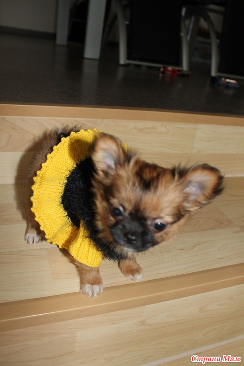 В виде маленького щеночка чихуахуа. Теперь буду вязать не только для своей Изабелки, но и для нашей маленькой любимицы Фукси