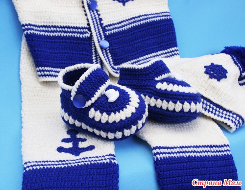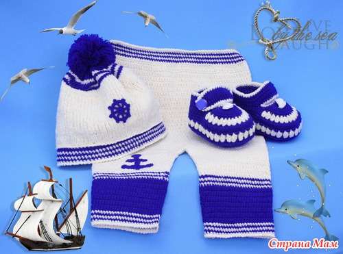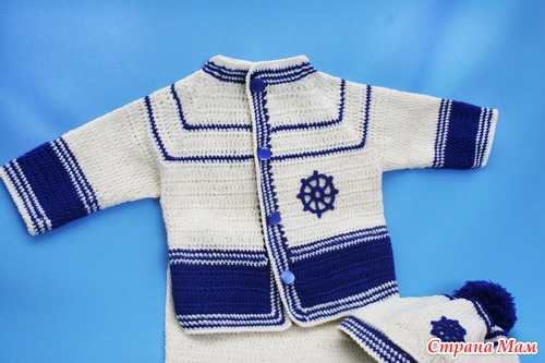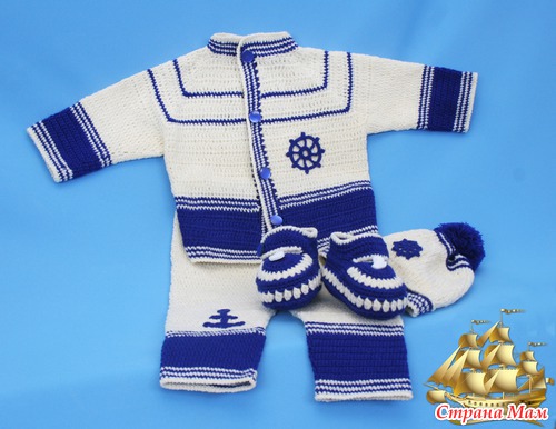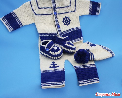 Хочу еще раз поблагодарить организаторов конкурса и всех милых дам, отдавших свои голоса за мое воплощение морской темы. Костюмчик был связан для родившегося 1 августа маленького богатыря, весом 4,5 кг.- сыночка моей коллеги. Может быть он и в самом деле, когда подрастет захочет стать капитаном дальнего плавания. А сейчас я искренне желаю этому малышу настоящего богатырского здоровья.