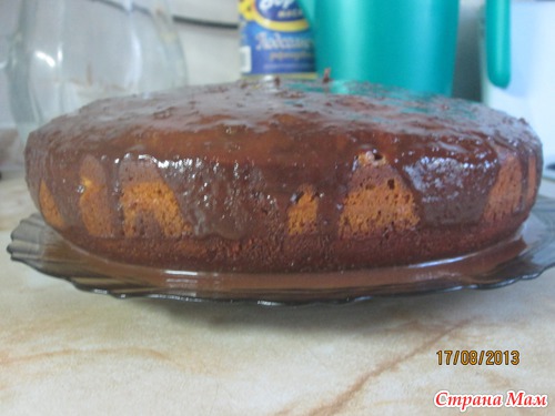 10) Аккуратно ставим в мультиварку на режим "Выпечка" на 60 минут. Когда это время пройдет, выключаем мультиварку и даем тортику постоять еще 10 минут.