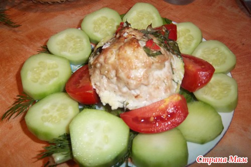 Импровизация: Сметанка 100 гр, яйцо, молочко примерно пол литра, в общем нужно столько чтобы почти скрыть кабачки и пошинкованые травки: укроп, кинза, базилик, даже вишневый лист, посолить немного, помним, что в фарше тоже была соль!