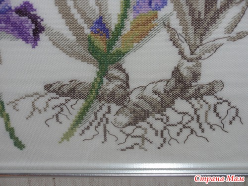 самым трудным для меня далась корневая система ириса, при её вышивании страдала моя нервная система