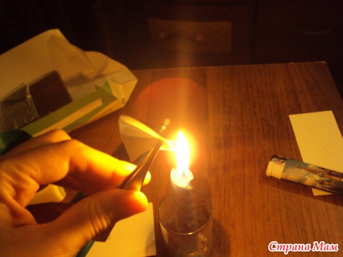 Затем мы немного опаливаем наш срез, т. к. лента в этом месте начинает сыпаться.
