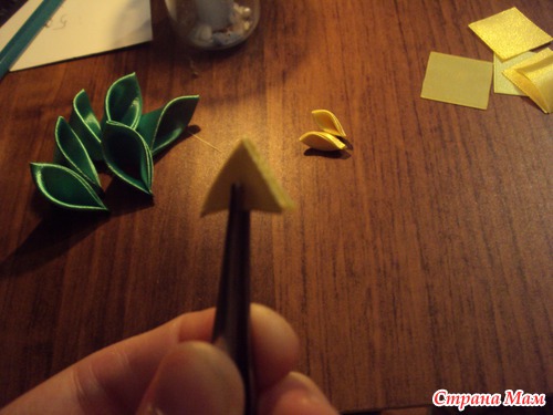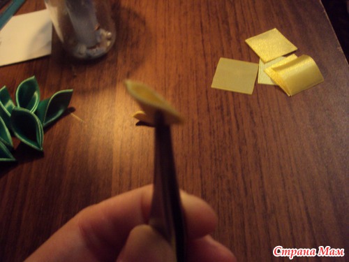 Аналогично зелёным делаем лепестки из жёлтых квадратиков.