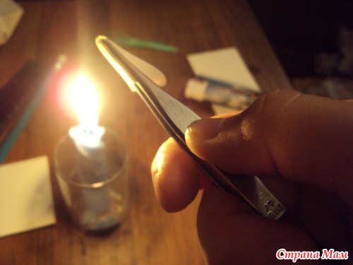 Здесь точнее видно, что нужно срезать - с левой стороны от пинцета - это наш теперь уже плоский лепесток, с правой стороны - то, что нам нужно срезать.
