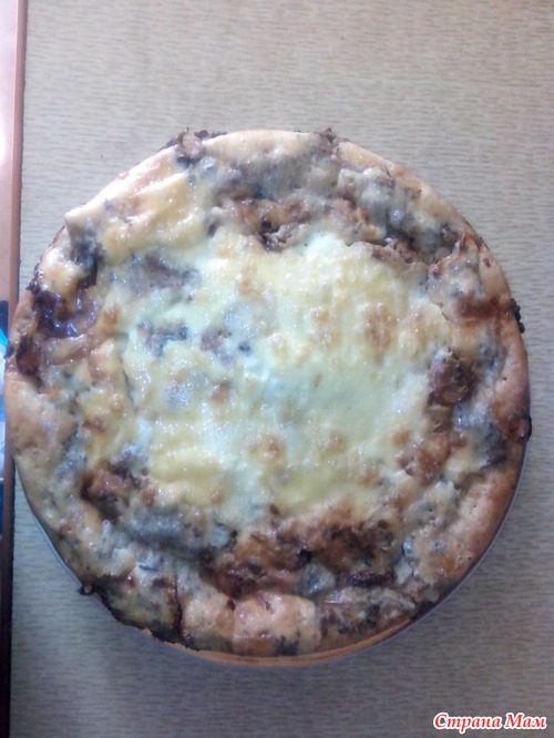 Готовый пирог можно украсить зеленью, или на ваш вкус. У меня был тертый на крупкой терке плавленный сыр.