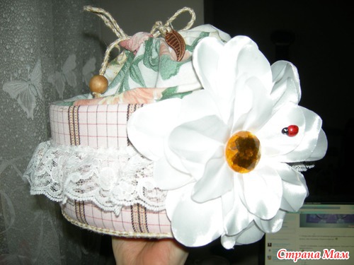 Коробка из-под торта превращается... в шкатулку для рукоделия (как ни банально