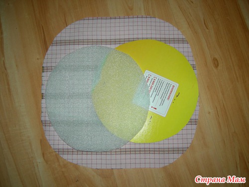 1. Из красивой картонки вырезаем круг и вставляем в середину. Отмеряли и отрезали полоски картона и подложки под ламинат (можно синтепон) для внутренних и наружных боков коробки.
