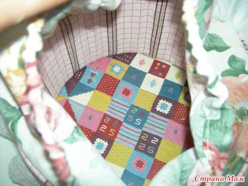 ВАЖНО! Делайте полоски чуть больше, чем необходимо примерно на 1-2 см (лучше потом обрежьте). А то получится как у меня - понадеялась на то что ткань добавит объем и обрезала впритык. В результате наружная полоса получилась короткой и дырку нужно было декорировать (или переделывать всё заново).