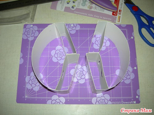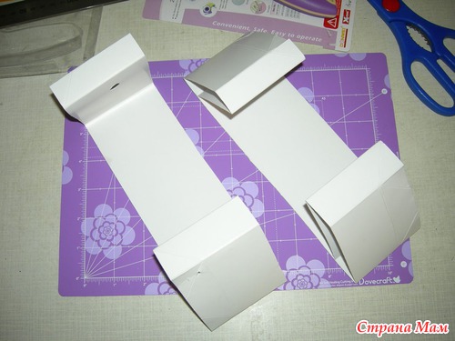Я её не выкинула, т. к. картон был там очень хороший.Дальше смотрите по фото, а то дольше описывать, чем сам процесс делать. Я её разрезала вдоль, опять склеила бока и вот результат.