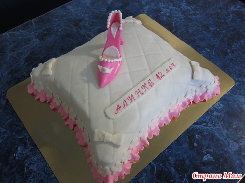 Подушка с туфелькой (первая)внутри классический бисквит, сметанный крем, персик вес 2,5 кг