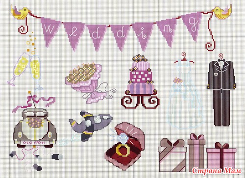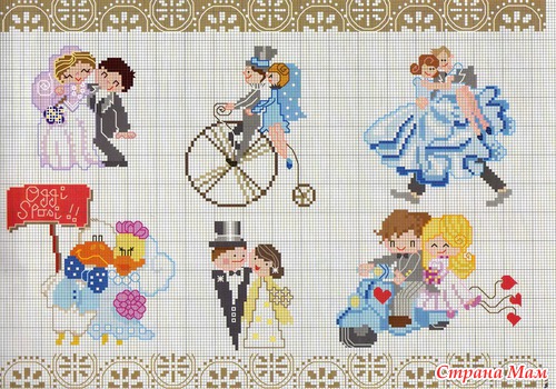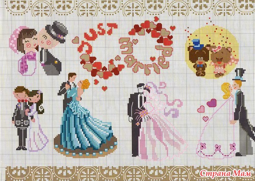 Нашла в нете схемки свадебных миниатюрок, которые помогут сделать любую свадьбу незабываемой.