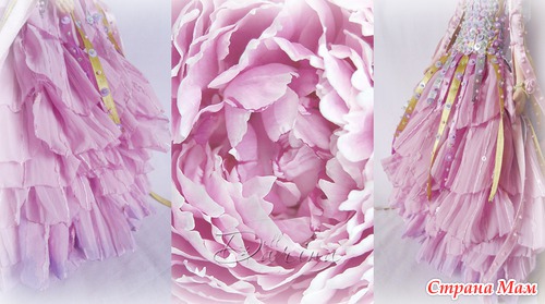 Юбка повторяющая лепестки пиона из легкого расшитого шелком и прозрачными паетками шифона.