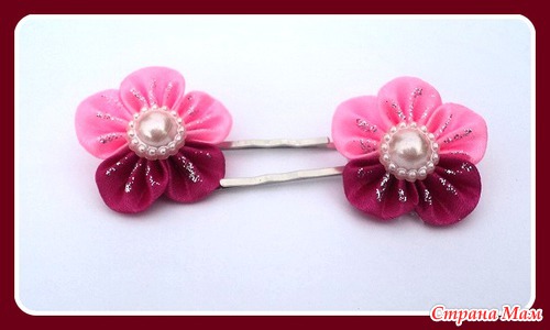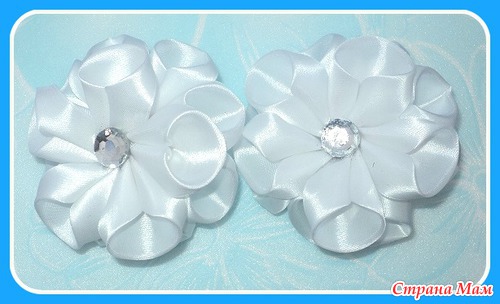 Бантик (делала впервые) Увлеклась, очень понравилось. Смотрится красиво, а делается не очень сложно. Сделала аж 6 штук-2 пары на резинках и 2 заколки-автомат