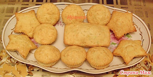 Кабачки натереть на терке, отжать и перемешать с тестом. Выложить тесто в формочки для выпечки (у меня были силиконовые). Выпекать в разогретой до 180 градусов духовке 35-40 мин.