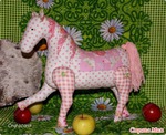 7)От клубка отрезаем пряди и пришиваем грив и хвост