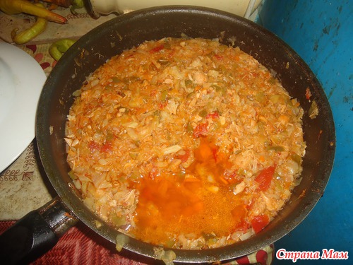 В той же сковороде, где был лук пожарить мелко нарезанные помидоры 0,5 кг на подсолнечно масле.