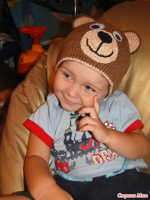 У сынули есть коричневая кожаная куртка, а шапки к ней красивой не было. Поэтому я взялась за крючок и "Гугл мне в помощь"