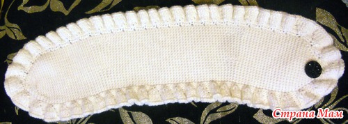 Вязала из пряжи Nord (Vita) Состав: 48 % шерсть, 52% акрил. Длина нити 116 м. Вес мотка 100 гр. Спицами № 4 вязала основное полотно, рюша - круговые спицы № 5. К сожалению я описание нашла позже, чем купила пряжу. Поэтому получилось не совсем то, на что я рассчитывала. Но результат понравился все равно. Основное полотно у меня связано простой платочной вязкой.
