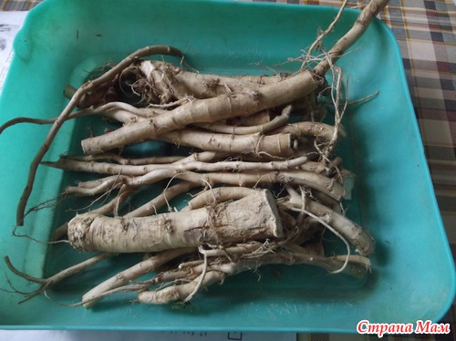 Настала пора выкапывать хрен. Именно в конце лета и осенью хрен набирает свою ядрёность. Хрен выкапываю каждый год. Поэтому корешочки ровные и чистить их совсем не сложно. Помыть. Мою хрен в рабочих перчатках. Очень удобно.