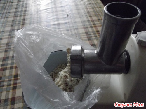 Готовимся перекручивать хрен. Что бы не плакать над мясорубкой, сделаем вот такую хитрость. В пакет поставим чашку