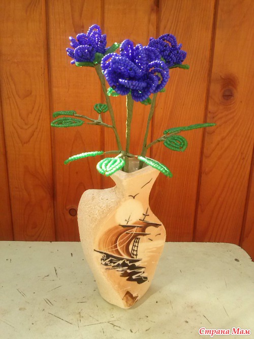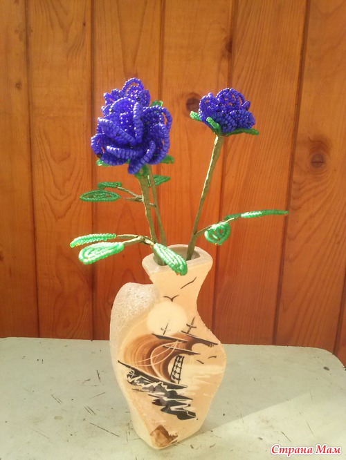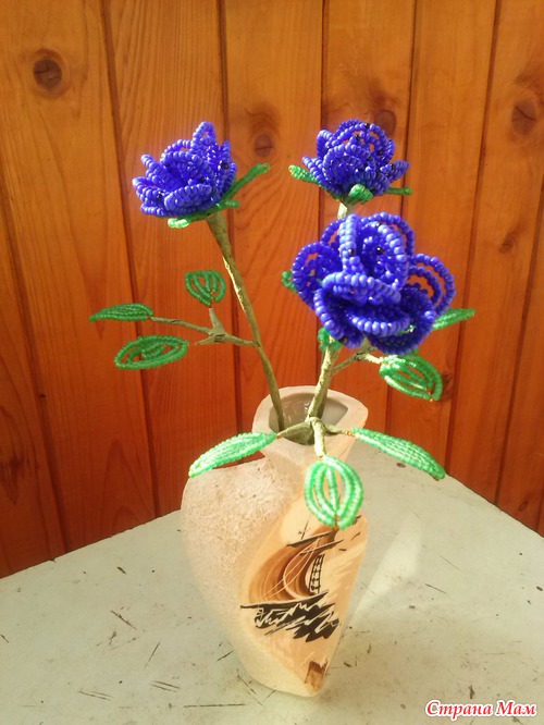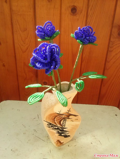 Тэги: розы, цветы, синий, ваза, бисер
