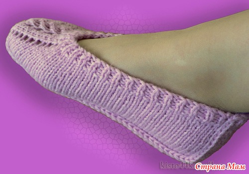 Примечание: Пряжа Пехорская № 16/2 (780 м) бобинная 4П14 в 3 нити. Подошва - в 4 нити. Расчет дан на 39 размер. Менять размер можно убавлением/прибавлением количества наборных петель. Остальное вяжется без изменения. На 7-ми центральных петлях носовой части можно выполнить рисунок в виде дырочек или косички.