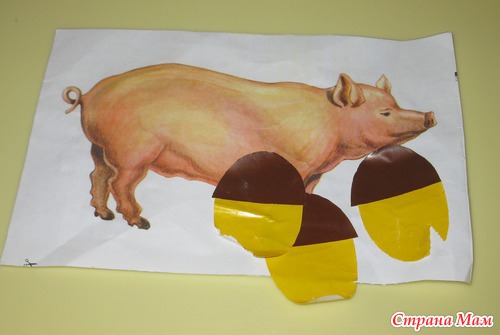 Творчество. Кормим свинью желудями (из самоклейки).