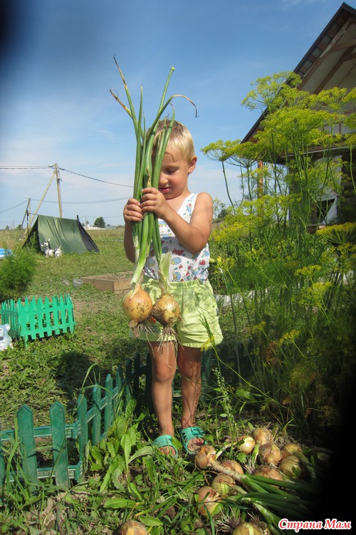 С мамой - дергать лук и полоть сорняки.