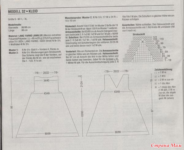 Набрать 154/173п. и вязать узор 2 8/9 х 19п. раппорта по схеме. Провязать 120 р. и продолжить узором 1.