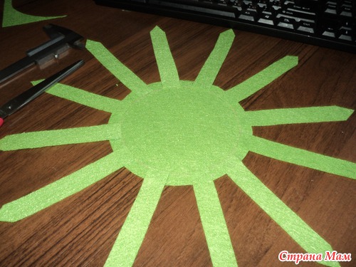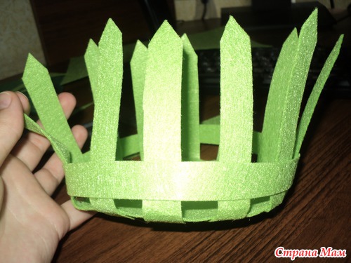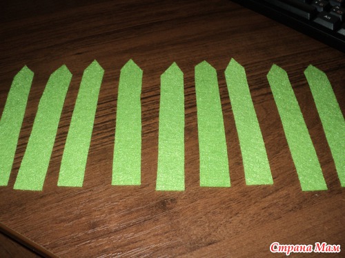 прямо на фетре рисуем травку и вырезаем ее (длина полоски равна окружности дна нашего заборчика)