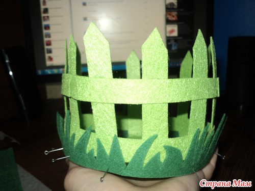 прямо на фетре рисуем травку и вырезаем ее (длина полоски равна окружности дна нашего заборчика)