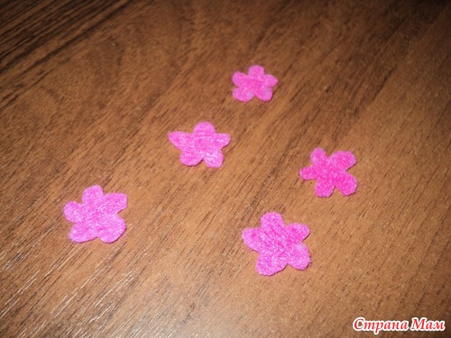 вырезаем цветочки (кому сколько хочется). можно ии серединку другого цвета вырезать, но я закрашу ее акриловой краской желтого цвета
