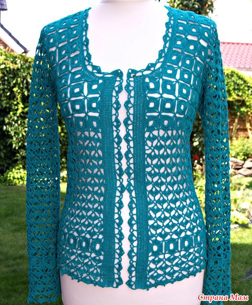 Девочки, выставляю на ваш суд мой жакетик"Изумрудный", за основу взят "Жакетик с атласной лентой" с Осинки