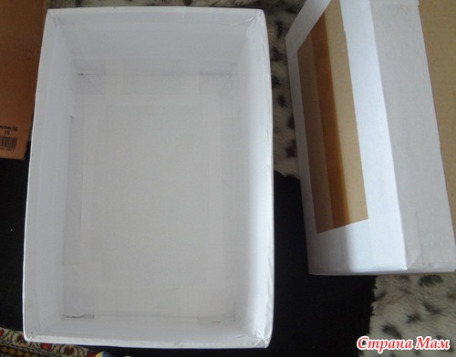 Для прочности на каждую сторону коробок и дно приклеила картон.