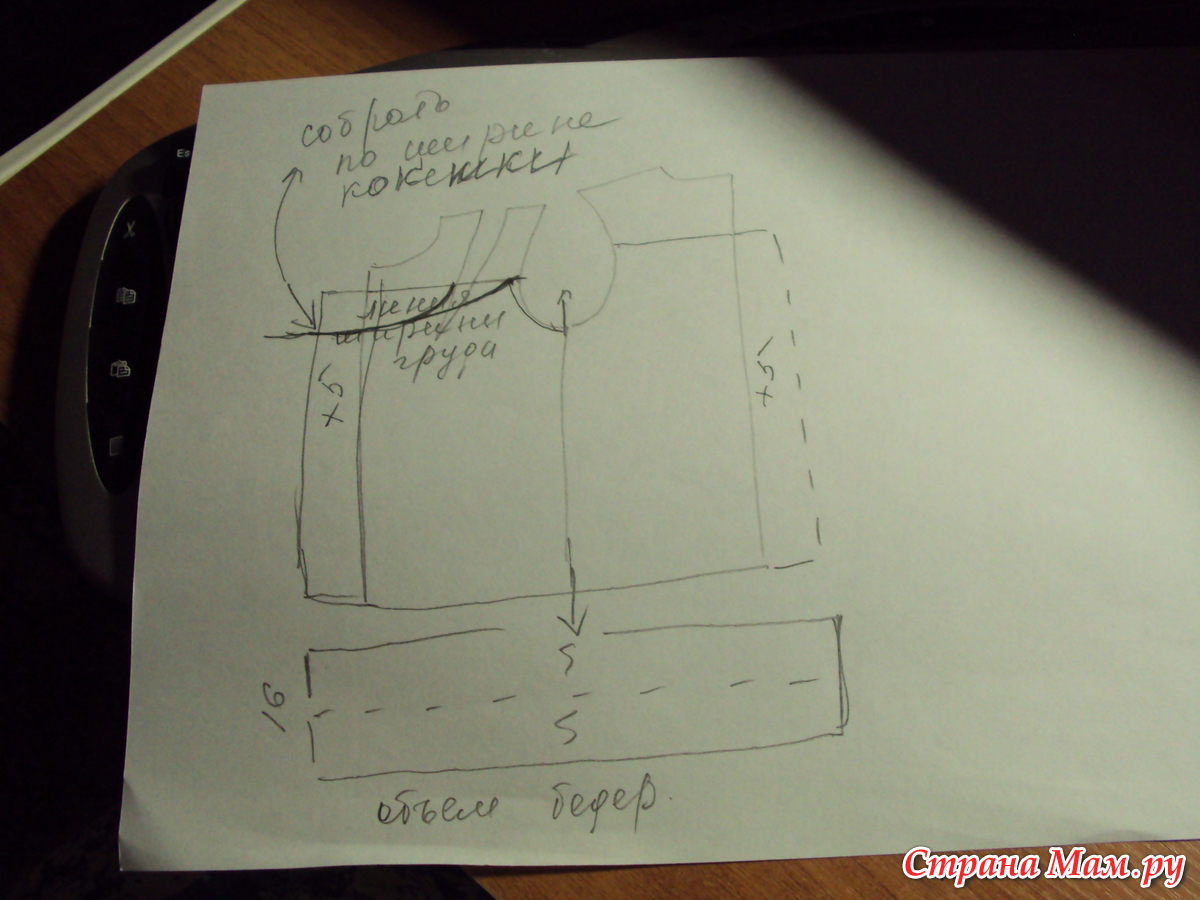 Из старой своей маечки сделайте вырез, как у этой кофточки, это будет у вас без складок. Теперь возьмите ткань, сложите складочками, закрепите сборочки иголочками, а они идут и сверху, и снизу, и наложите свою маечку-заготовочку и вырежьте, прямо уже со сборками-складочками. Я думаю так можно. Внизу пришивается широкий пояс. Да. сделать подлиннее, потому что здесь с напуском. Еще бы сзади посмотреть.