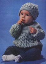 Вам потребуется: 100 г голубой пряжи "Baby Uni" (50 % акрила, 50 % полиамида, 165 м/50 г) или пряжи "Linie 152" (55 % нейлона, 45 % полиакрила, 215 м/50 г); прямые спицы № 2 и 2,5; круговые спицы № 2; вспомогательная спица для вязания кос.