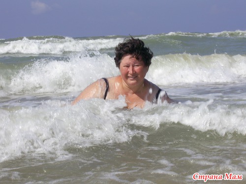 это моя мачеха-мировая тетка. Радовалась морю, как Данил, ибо тоже видит его в первый раз.. Волной ее тоже снесло-представляете, какие были волны?...