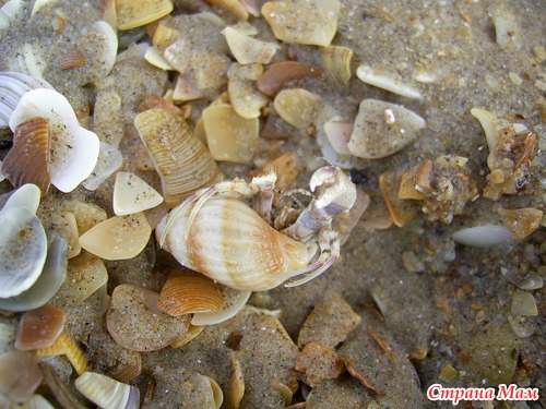 Искупались, поехали домой. Надо сказать, устроились мы с комфортом, хозяева гостевого дома, где жили, на пляж возят сами 2 раза в день, и не на центральный, где из-за количества народа загорать можно стоя, а подальше, где и песок чистый, и водичка, и ракушки!!! а так же обитатели этих ракушек