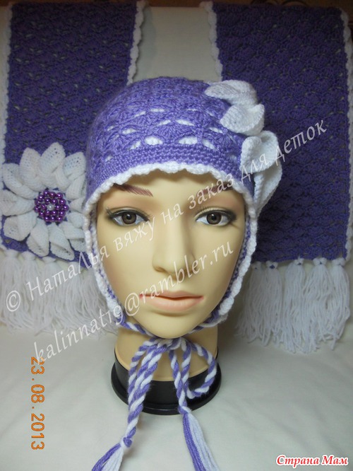 Привет всем)))Вот принимайте очередную мою работу - комплект на осень-зиму. Использовала пряжу - белая Картопу Гонка, сиреневая - Ализе беби вул, крюч. 3. Надеюсь, вам понравится)))