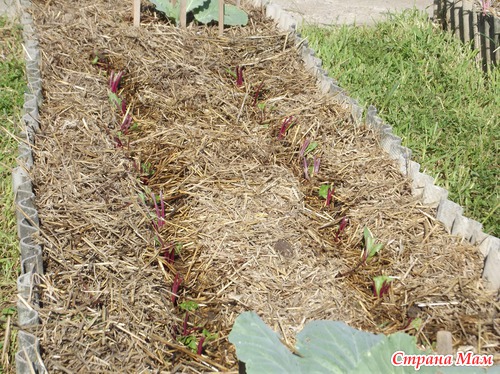 Всё закладываю соломой. Поливаю ещё раз поверх соломы в бороздки. Теперь единственный уход за свеклой будет только полив.