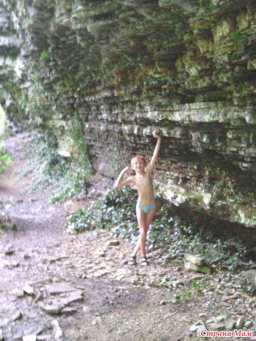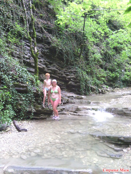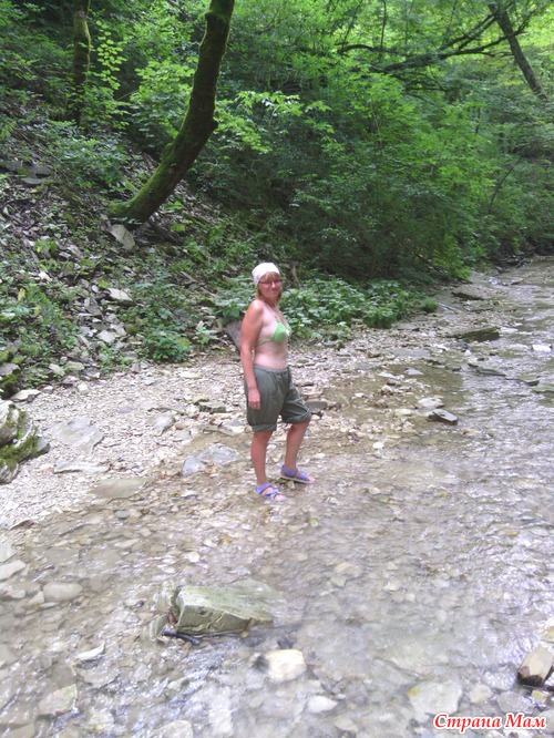 Маршрут несложный, идет по руслу реки Пшады. Вода прохладная, но по ней так здорово шлепать в сандалях, даже детки топали.