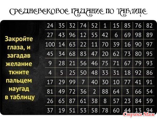 Загадав желание, закройте глаза и ткните пальцем наугад в таблицу!