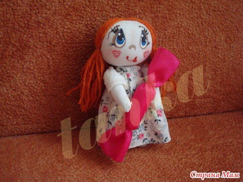 С этой куколкой возни много было: не могла понять, как закрепить волосы мальчику, а в конце концов надела ему на голову кепку с козырьком. Это Витюша. Он только с виду стеснителен, а на самом деле в тихом омуте...