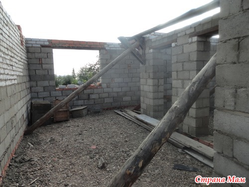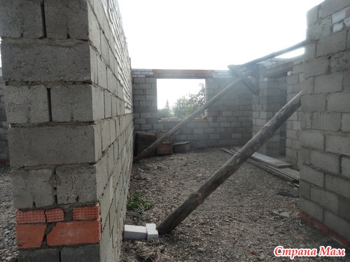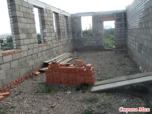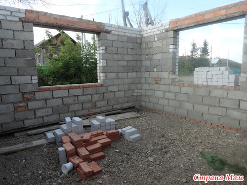 Далее о стройки, --полы первого этажа мы решили сделать засыпными, без ботпола. В начале кидали всё, плитник, били шифер, заваливали черноземом, затем засыпали щебенкой, и осталось нам залить под уровень выведенного нуля, а во время внутренней отделки посмотрим, скорее положим везде кафель, а в гостиной расстелем линолеум Могу с уверенностью сказать засыпные полы теплее. при наших морозах --40.
